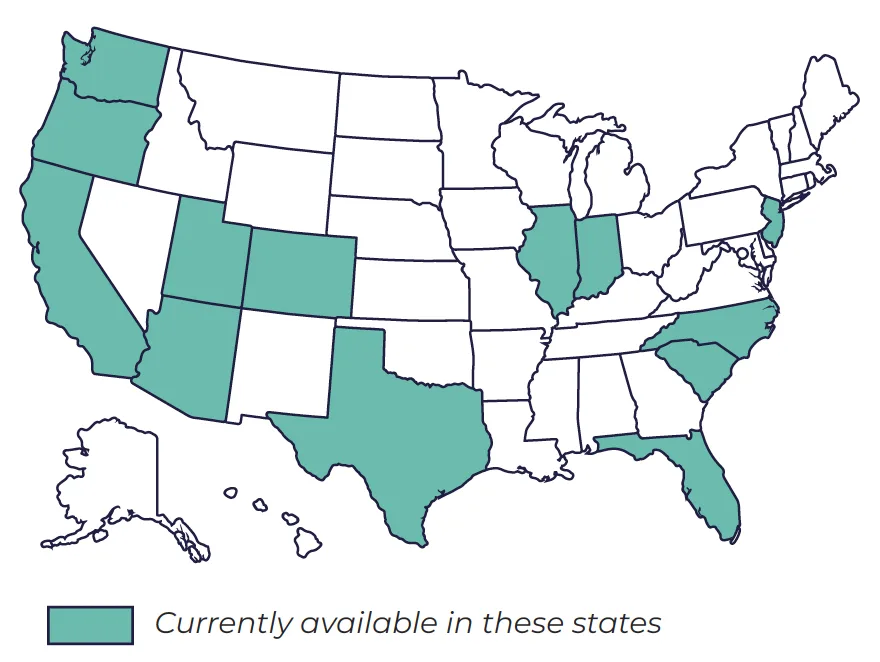 Now available in AZ, CA, CO, FL, IL, NC,